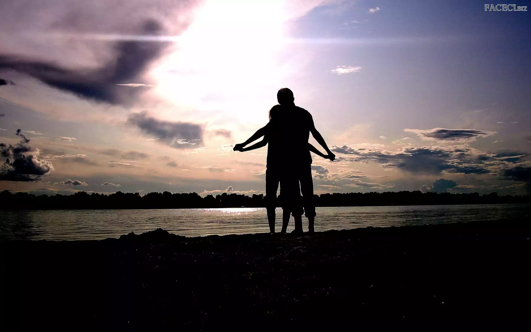 Słońca, Zachód, Postaci, Zakochani, Jezioro - faceci.biz
